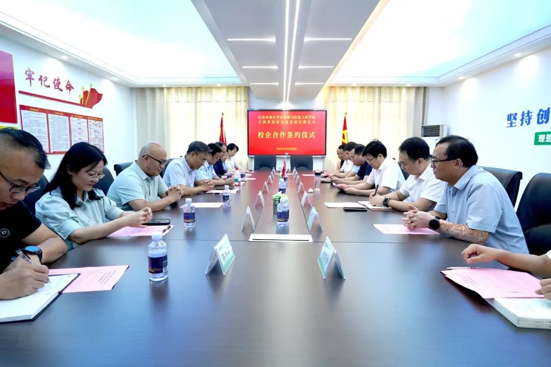 2025年5月26日,江西農(nóng)業(yè)大學(xué)計(jì)算機(jī)與信息工程學(xué)院 和 江西菜東家農(nóng)業(yè)發(fā)展有限公司校企合作簽約揭牌儀式在 分宜縣 菜東家總部隆重舉行。 江西農(nóng)業(yè)大學(xué)計(jì)算機(jī)與信息工程學(xué)院黨委書記楊峰、 分宜縣政府 -